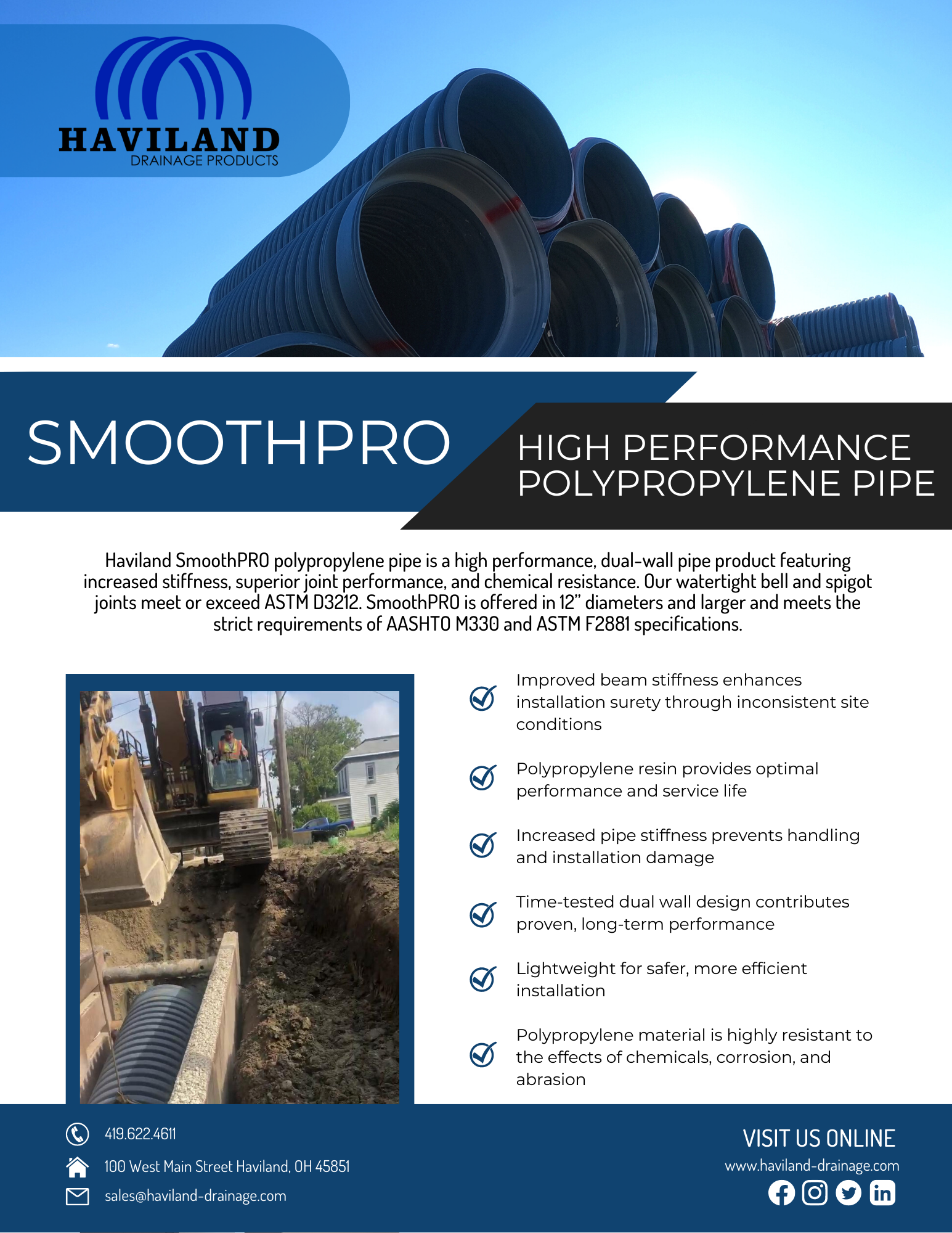 Resources Catalog & Brochures Product Catalog SmoothFlex Brochure Abbreviated Catalog SmoothPRO HP Polypropylene Installation Guides Smooth Flow Installation Guide Agricultural ASTM Installation Guidlines Engineering Support Hydrocad Quality Assurance ASTM: Smooth Flow Submittal 4″-60″ AASHTO: Smooth Flow Submittal 4″-60″ Triple Wall Pipe Submittal SmoothPRO HP Polypropylene Submittal Other Resources Shipping – Load Multiplier Sheet Drainage Calculator - Smartphone App for IPhone Drainage Calculator Worksheet – Excel Drainage Calculator - Smartphone App for Android